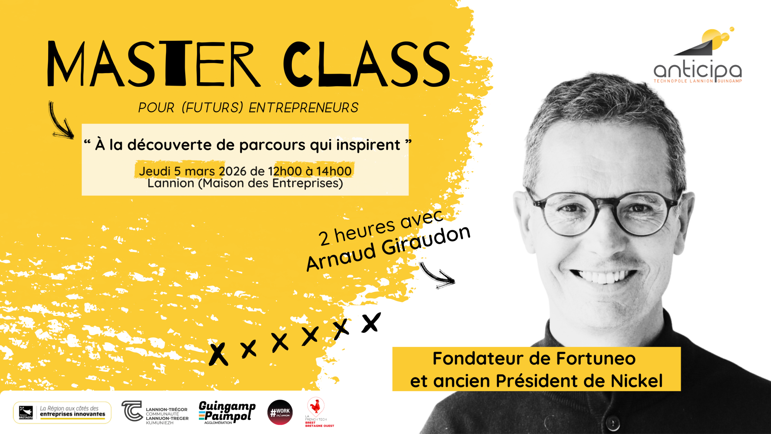 Pour cette quatrième édition, Arnaud Giraudon reviendra sur son parcours entrepreneurial, en partageant autant ses réussites majeures que les échecs qui l’ont le plus formé, dans une démarche de transmission sincère et engagée.