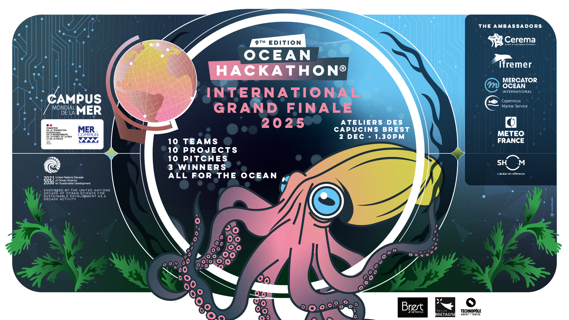 Le 2 décembre 2025 aura lieu la grande finale de l’Ocean Hackathon® à Brest de 14h00 à 17h30.
