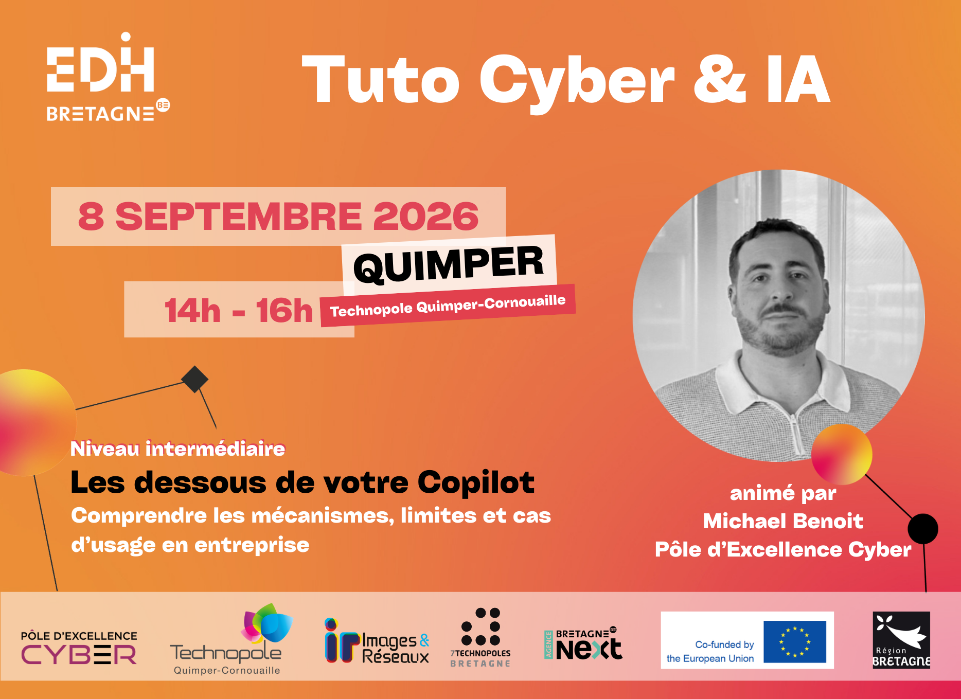 C’est dans ce contexte que sont lancés les TUTO CYBER & IA. Trois ateliers pratiques, organisés dans le cadre de l’EDIH Bretagne, avec la Technopole Quimper-Cornouaille , conçus pour vous aider à :